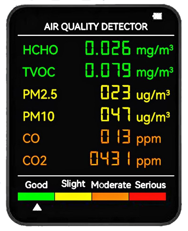A HMT7 levegőminőség-monitor sokoldalú, megbízható készülék, ami folyamatosan, részletesen tájékoztat a környező levegő aktuális minőségéről, illetve annak változásáról. Az eszköz 6 fontos minőségi paramétert
